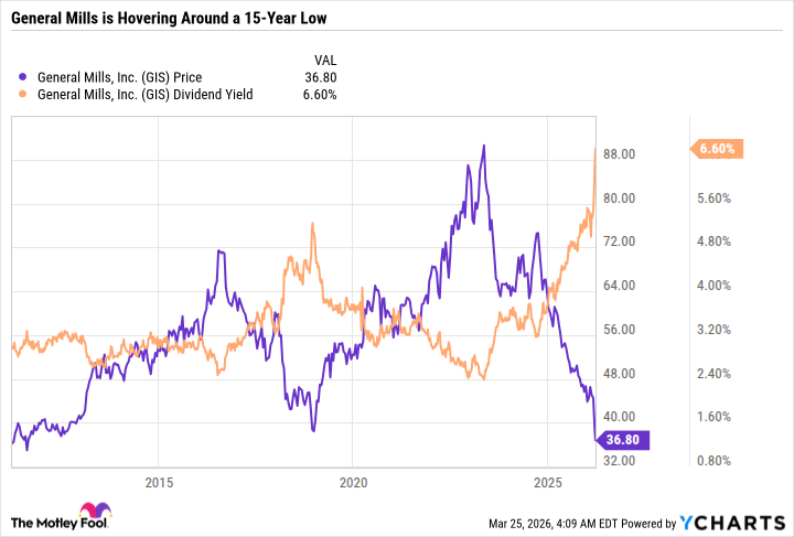 General Mills. Название, как старая фотография. Когда-то это было что-то, а теперь… ну, теперь это просто еще один объект для пристального взгляда. Акции, как загнанный зверь, сползли почти на 15-летнее дно, в унисон с общим падением рынка. Но падение это, знаете ли, не внезапное. Это медленное, неумолимое сползание, как песок сквозь пальцы.