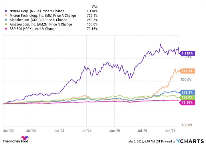 К счастью, эти четыре компании продемонстрировали выдающиеся результаты с начала 2023 года, обеспечив среднюю доходность в 559% за трехлетний период. Для сравнения, S&P 500 вырос всего на 79%. Но не будем забывать, что прошлое не гарантирует будущее. Иногда взлет сменяется падением, а кажущееся благополучие оказывается лишь иллюзией.