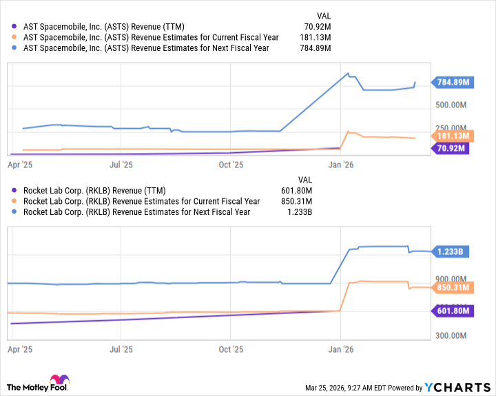 AST SpaceMobile (ASTS 5.27%) и Rocket Lab (RKLB 6.20%) оказались в центре внимания инвесторов, предвосхищающих эту золотую лихорадку. Их акции взлетели более чем на 1500% и 1700% соответственно за последние три года. Любопытно, насколько долго продлится этот полёт фантазии.