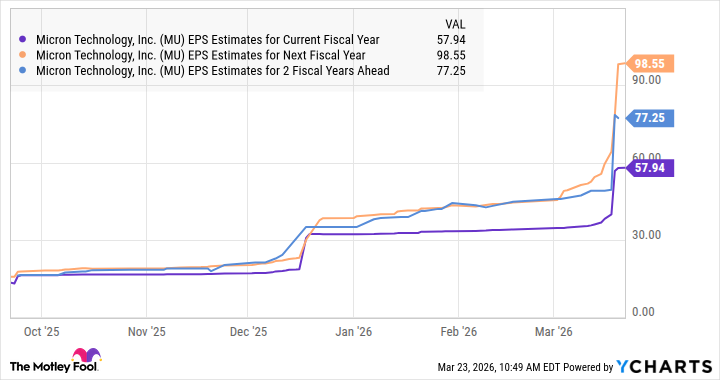 В то же время, перспективы компании указывают на то, что 2026 год станет рекордным. Компания ожидает выручку в размере 33,5 миллиарда долларов в текущем квартале, что более чем в 3,5 раза превышает 9,3 миллиарда долларов за аналогичный период прошлого года. Выручка Микрона за 2025 финансовый год (закончившийся в августе прошлого года) составила 37,4 миллиарда долларов, что означает, что компания находится на пути к получению почти такой же прибыли за один квартал. И это, как мне кажется, вызывает определенное беспокойство, поскольку такие высокие темпы роста не могут быть устойчивыми в долгосрочной перспективе.