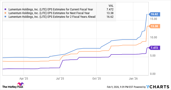Акции этой компании, занимающейся производством оптических и фотонных сетевых компонентов, обеспечивающих высокоскоростную передачу данных в центрах обработки данных ИИ, уже выросли на 56% в 2026 году. Вполне вероятно, что эта тенденция сохранится, и Lumentum может стать лидером по росту среди акций, связанных с чипами ИИ. Однако, прежде чем поддаваться оптимизму, необходимо взглянуть на ситуацию трезво.