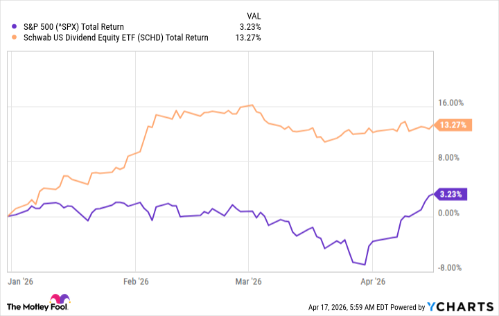 Дивидендный ETF может помочь вам в этом. Schwab U.S. Dividend Equity ETF (SCHD) – популярный выбор, который показывает хорошие результаты в этом году.
