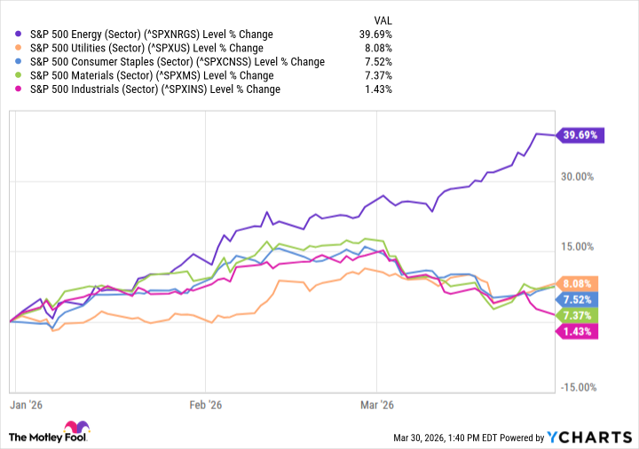 У всех этих секторов есть одна общая черта: их обычно считают «скучными» оборонительными секторами, особенно по сравнению с такими секторами, как технологии или товары необязательного спроса. Хотя рост возможен, эти компании обычно не считаются высокотехнологичными, а скорее надежными и дружественными к акционерам. Многие из них также вовлечены в экосистему искусственного интеллекта, но не в технологическую ее часть. Это возможность получить выгоду, не выбирая технологического «победителя». Некоторые из этих секторов цикличны, поэтому наиболее эффективные сектора могут выглядеть совсем иначе через несколько месяцев. Однако многие из тех, кто показывает хорошие результаты, отвечают тем критериям, которые вы обычно ожидаете увидеть, когда сектор процветает. Так и должно быть. Сойдет.