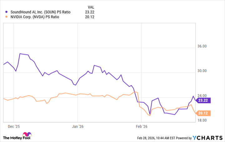 Цена акций SoundHound все еще довольно высокая. Отношение цены к выручке составляет 23,2. Это даже больше, чем у Nvidia. Nvidia – это, конечно, совсем другой уровень. Они делают аппаратное обеспечение, а SoundHound – программное. Но я не думаю, что SoundHound заслуживает такой высокой оценки. Они все еще находятся на ранней стадии коммерциализации. Им предстоит еще много работы, чтобы добиться успеха.